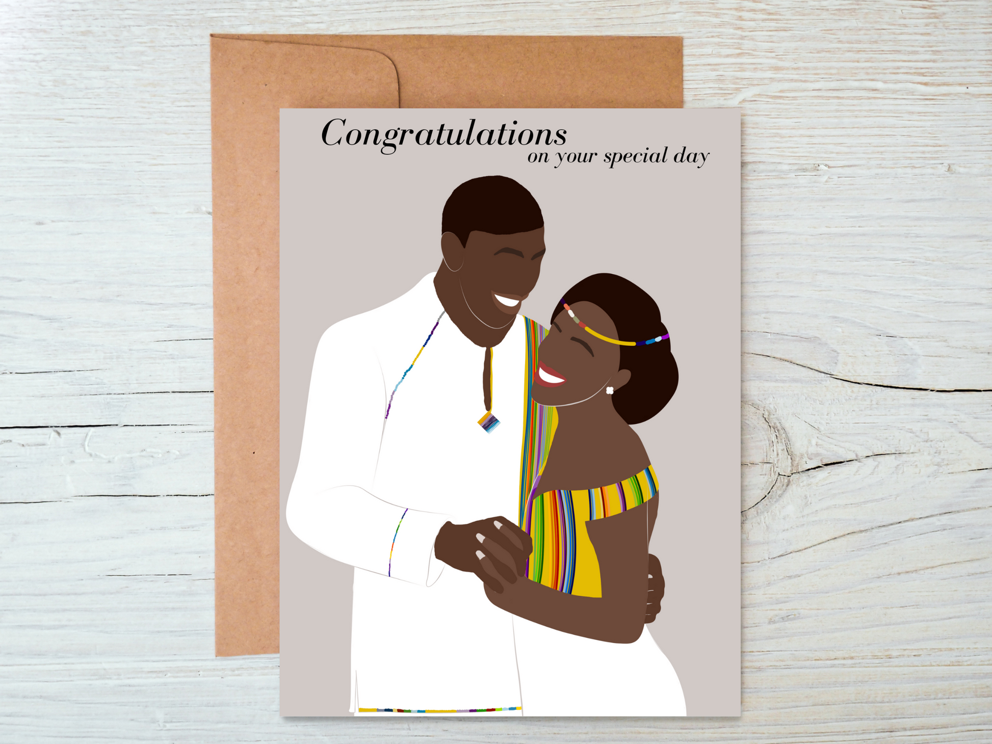This card is 5 x7 ins and made from 350gsm Silk Card Stock, with a low surface sheen and luxurious feel finish to the card. Each card is left blank on the inside for your personal message . Each card comes with a 110gsm Kraft paper envelope.