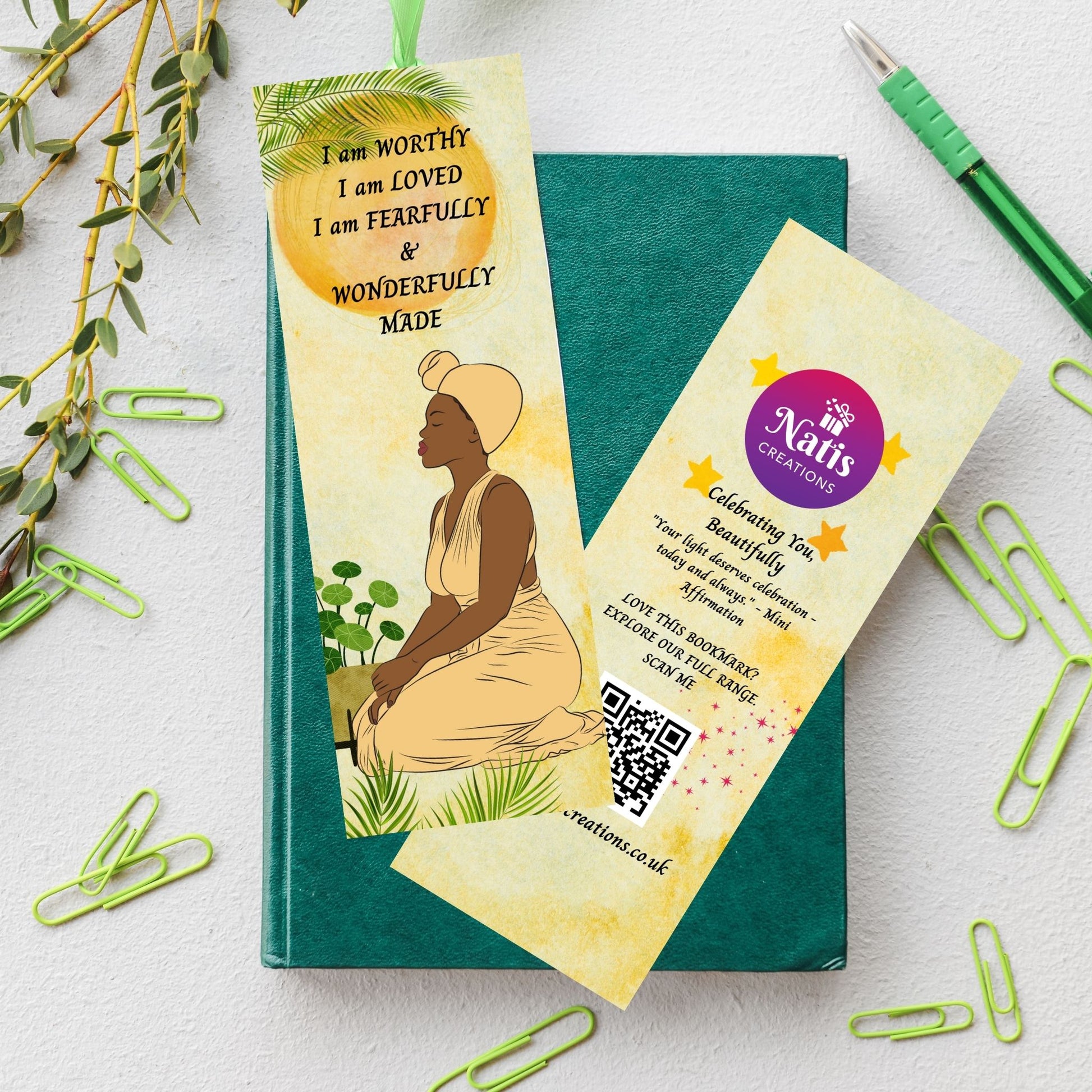 The Beautiful Black woman illustration is printed on thick paper with Matt laminate to ensure durability. This luxurious bookmark is perfect for book lovers, avid readers and perfect for those stocking fillers this Christmas. They will fill the hearts with joy of any recipient. Free Delivery with the purchases of Bookmarks