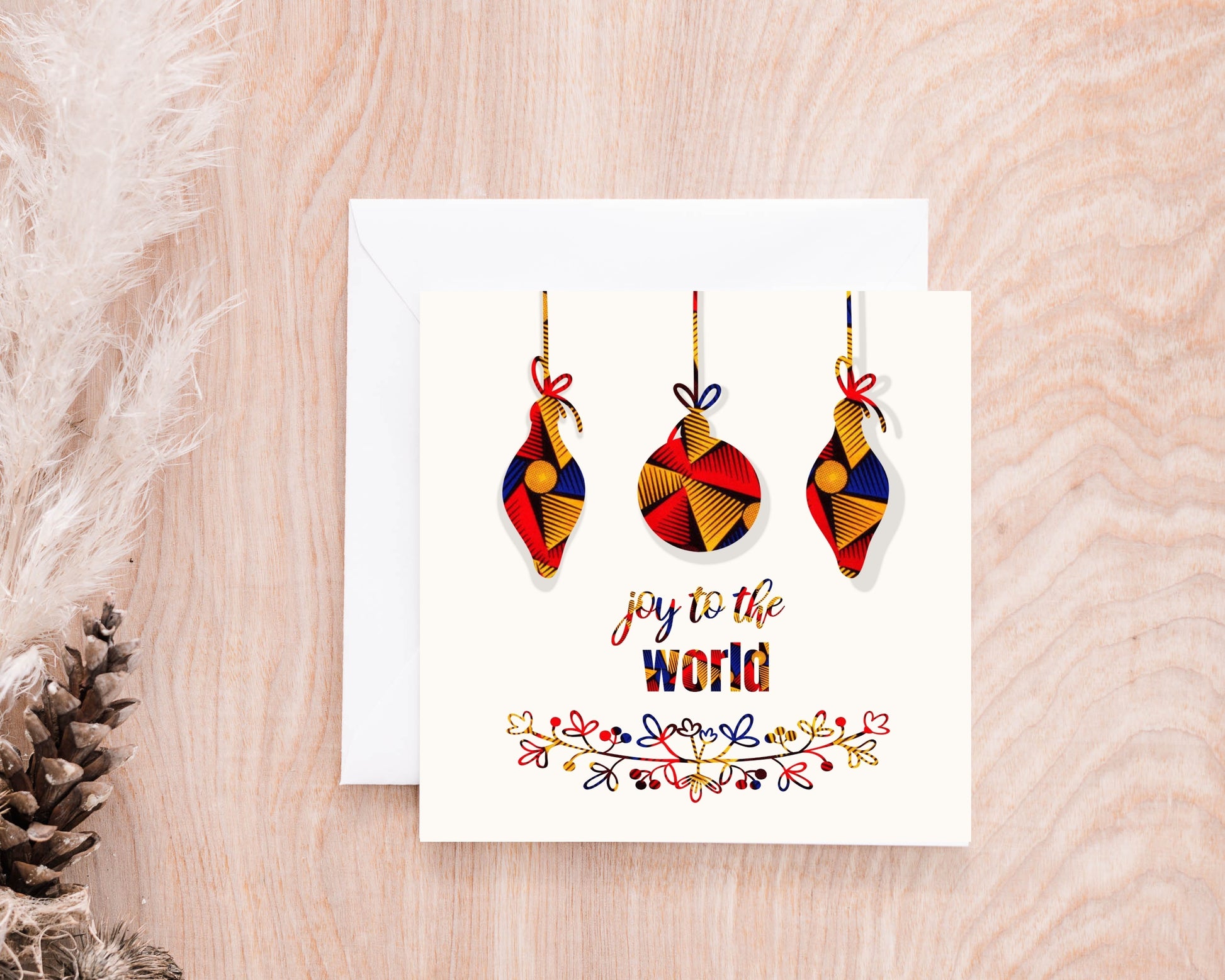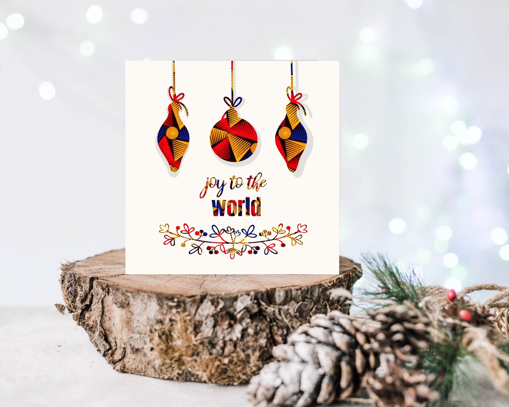 Joy To The World Christmas Card in African Print Wax Design, Ankara Print Baubles - Christmas Shop