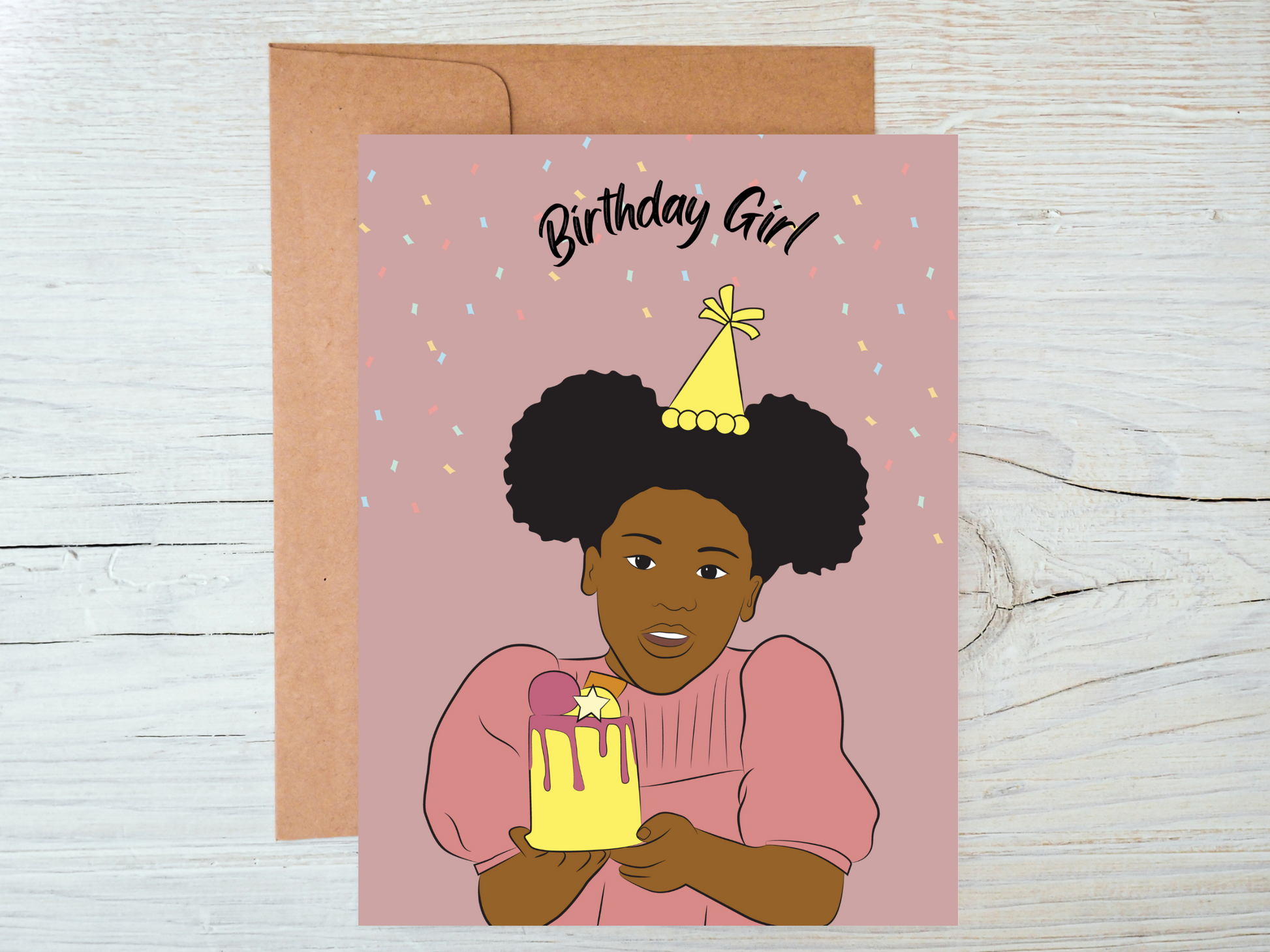 Little Black Girl Happy Birthday Card, Black Girl Greeting Card
