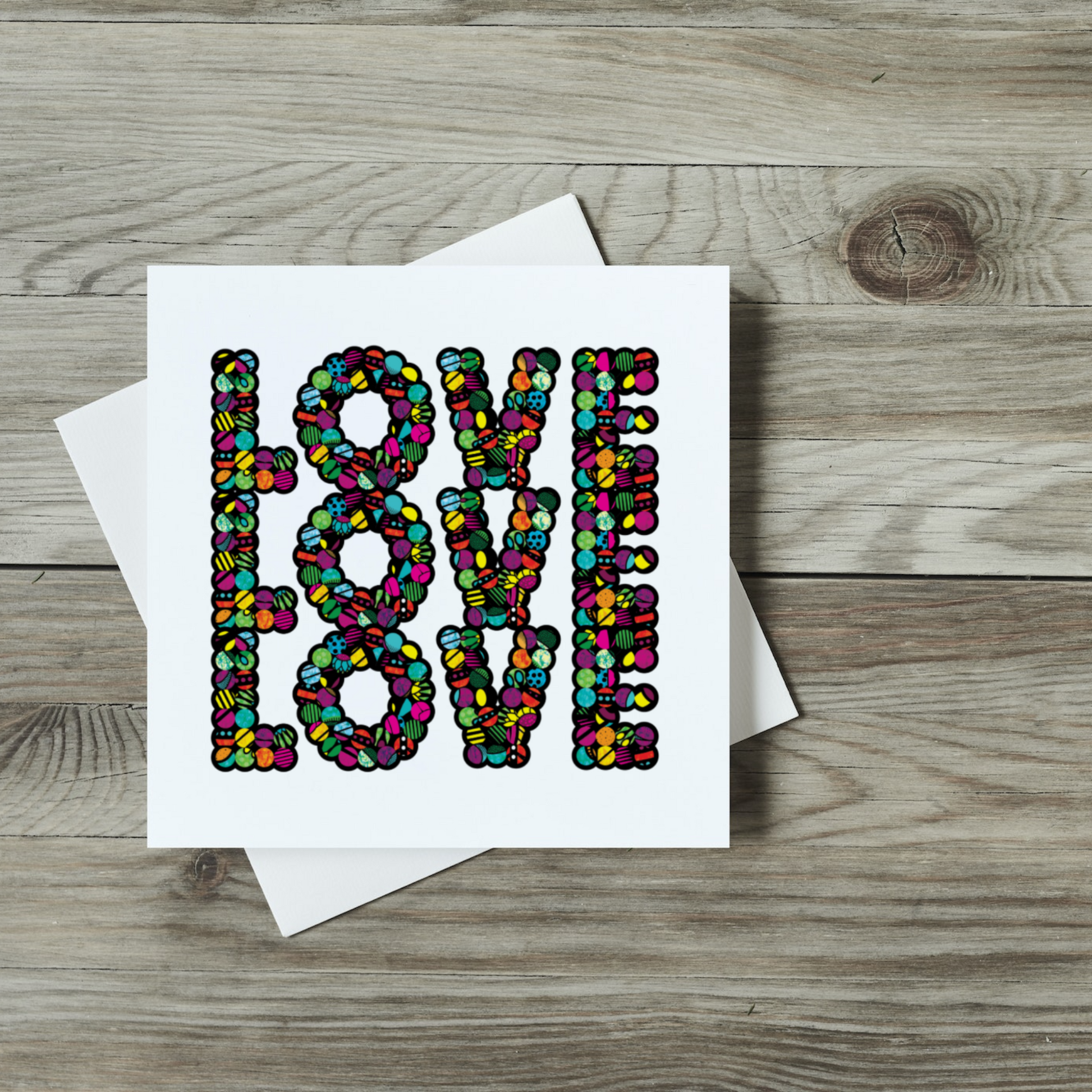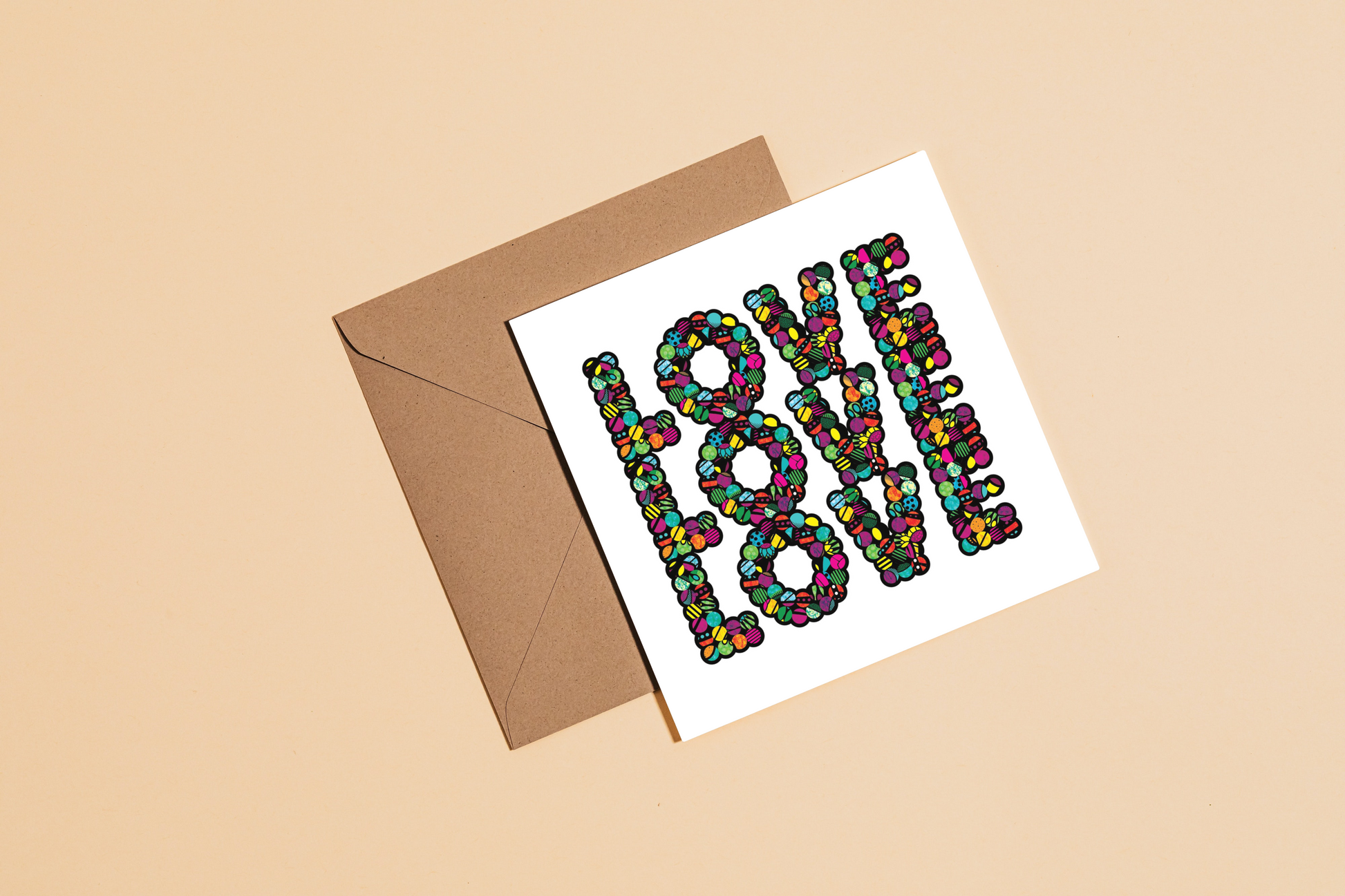 This card is square 150mmx150mm and made from 300gsm deluxe uncoated card stock, with a low surface sheen finish to the card. Each card is left blank on the inside for your personal message. Each card comes with a 110gsm kraft paper envelope.