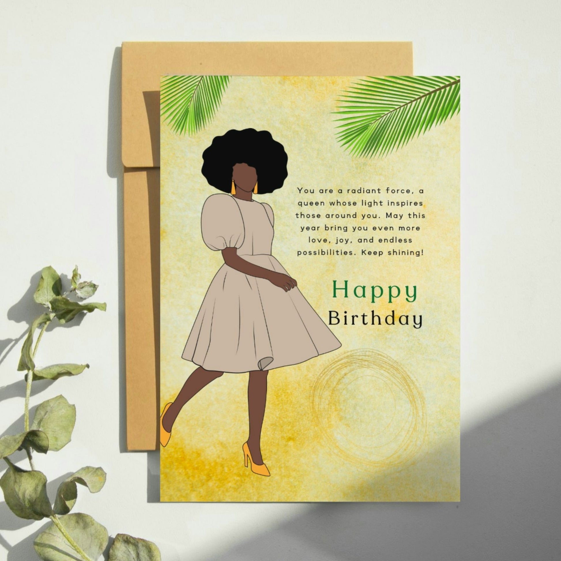 Celebrate the beauty, strength, and grace of Black and Brown women with our exclusive collection of Afrocentric greeting cards. Designed to resonate deeply, each card combines vibrant colors and elegant illustrations that honor heritage, culture, and sisterhood. Perfect for birthdays, encouragement, or any special occasion!