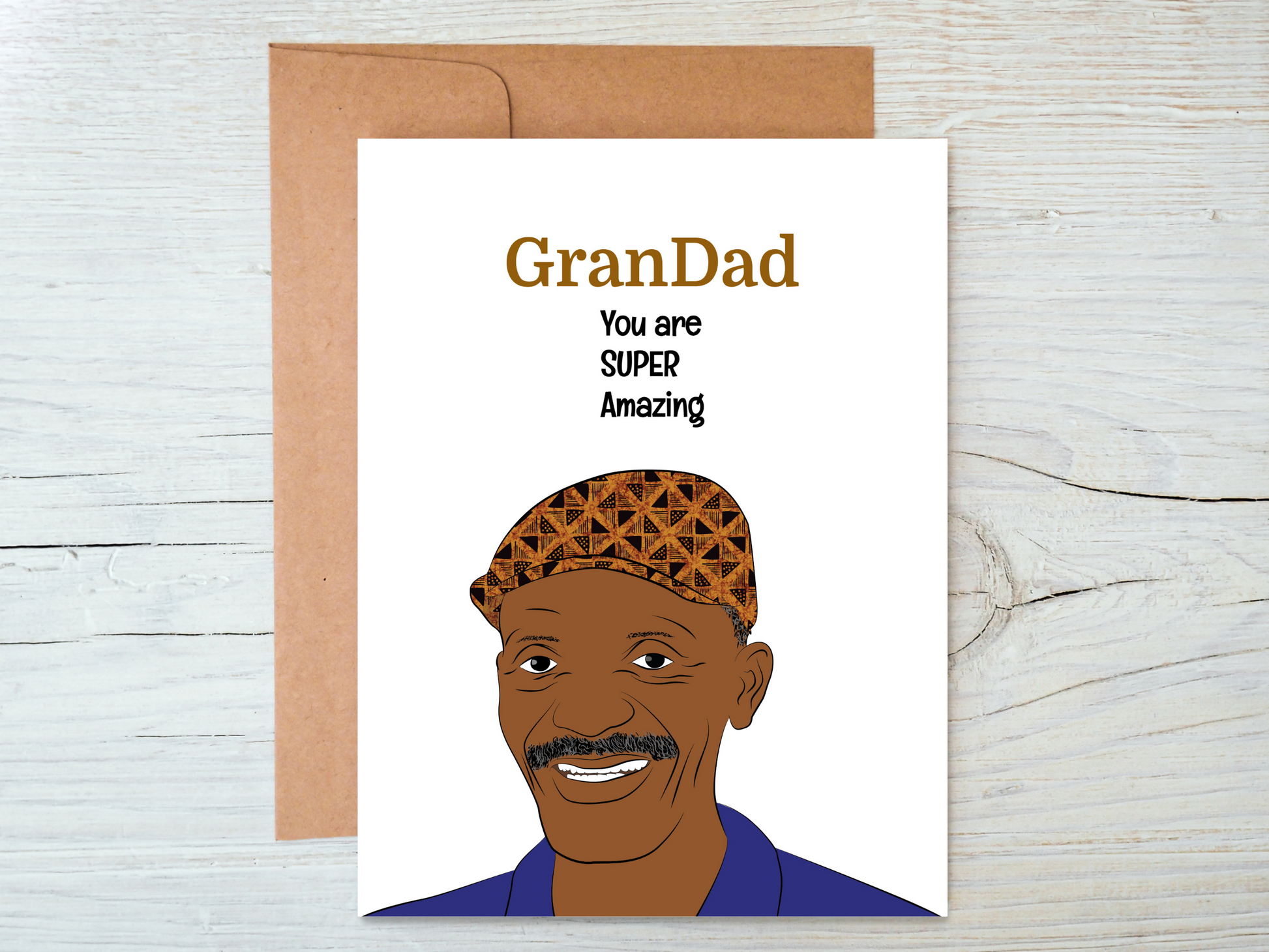 Super Amazing Grandad, Black Grandad, Father’s day, Birthday. Cards for Men
