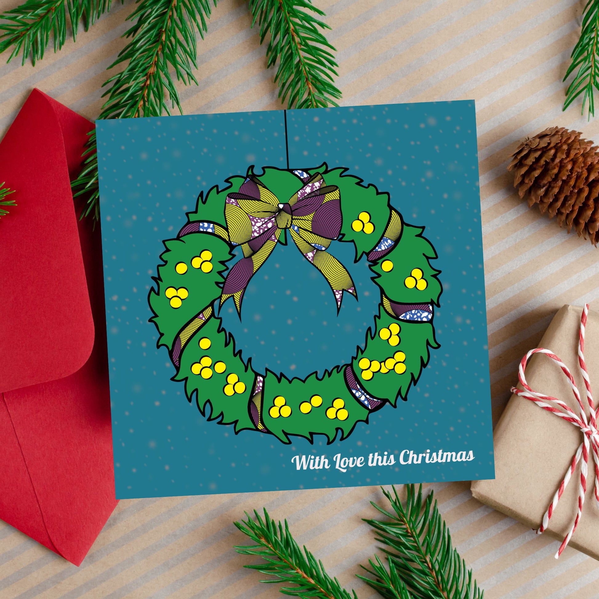 With Love This Christmas Wreath Card, African Print Wax Inspired - Christmas Shop